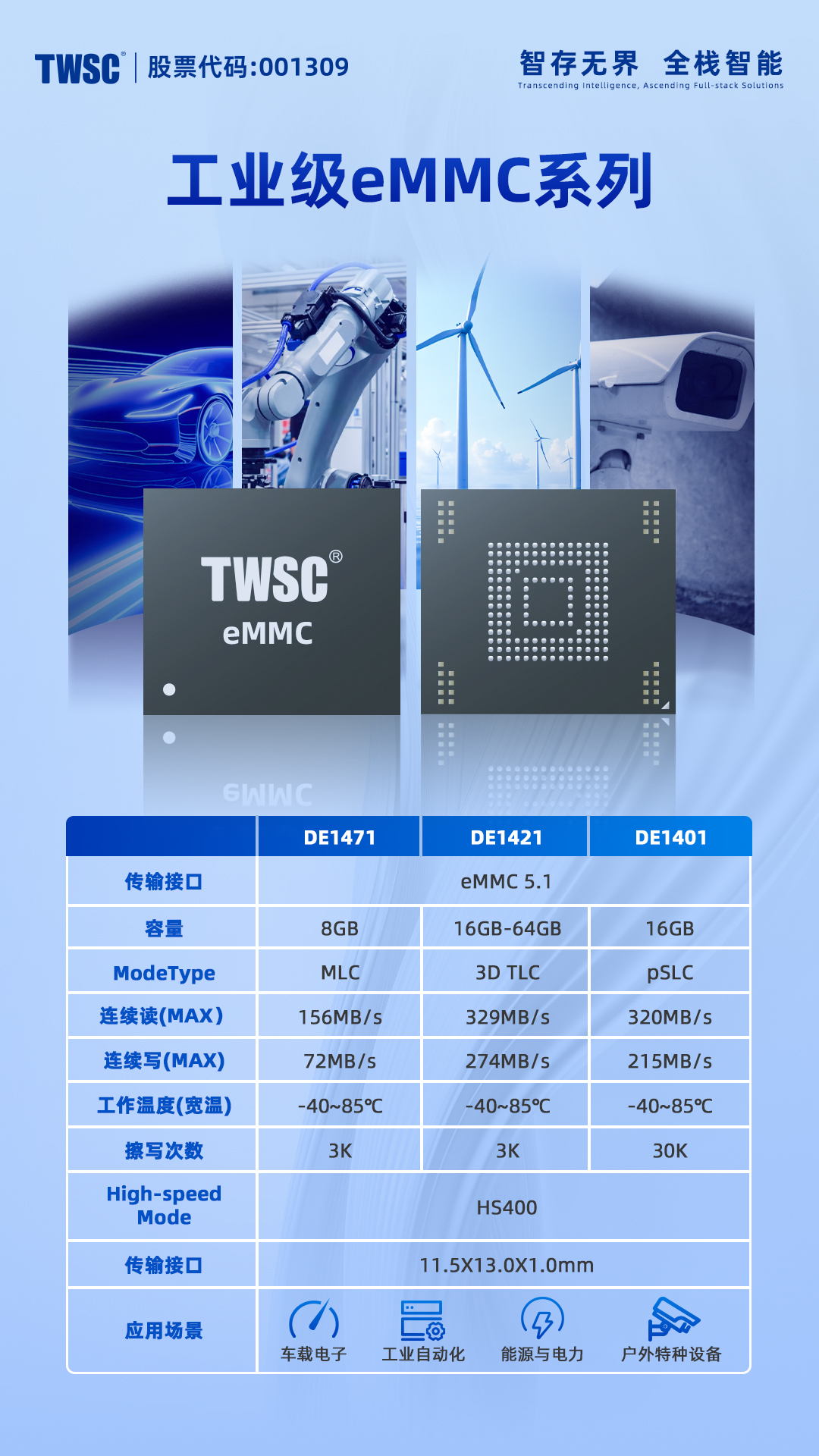 “工業(yè)4.0”對(duì)設(shè)備實(shí)時(shí)性與“智能電網(wǎng)”建設(shè)對(duì)系統(tǒng)可靠性的需求,嵌入式存儲(chǔ)芯片在工業(yè)控制領(lǐng)域成為承載關(guān)鍵數(shù)據(jù)與系統(tǒng)運(yùn)行的重要元件,德明利工業(yè)級(jí)DE1471、DE1421、DE1401系列eMMC集成高可靠性設(shè)計(jì)與優(yōu)化多項(xiàng)固件算法,正深度融入關(guān)鍵基礎(chǔ)設(shè)施場景。